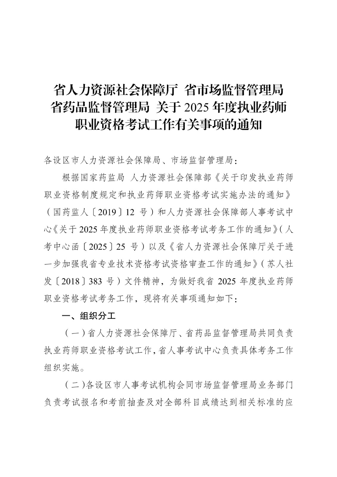 从江苏省人力资源和社会保障厅获悉,2025年江苏执业药师职业资格考试工作有关事项的通知已公布,6月25日起报名,具体详情如下: